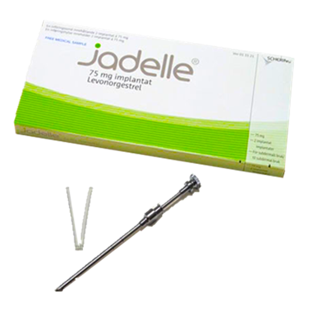 Jadelle® implant – A small, flexible rod (single‑rod etonogestrel implant such as Nexplanon®) or two small rods (Jadelle®) placed just under the skin of your inner upper arm. It slowly releases progestin (progestogen) to prevent pregnancy.  Dr. Lisa Searle is fully qualified to insert and remove this small rod placed under the skin of the upper arm.  Picture of the implant.